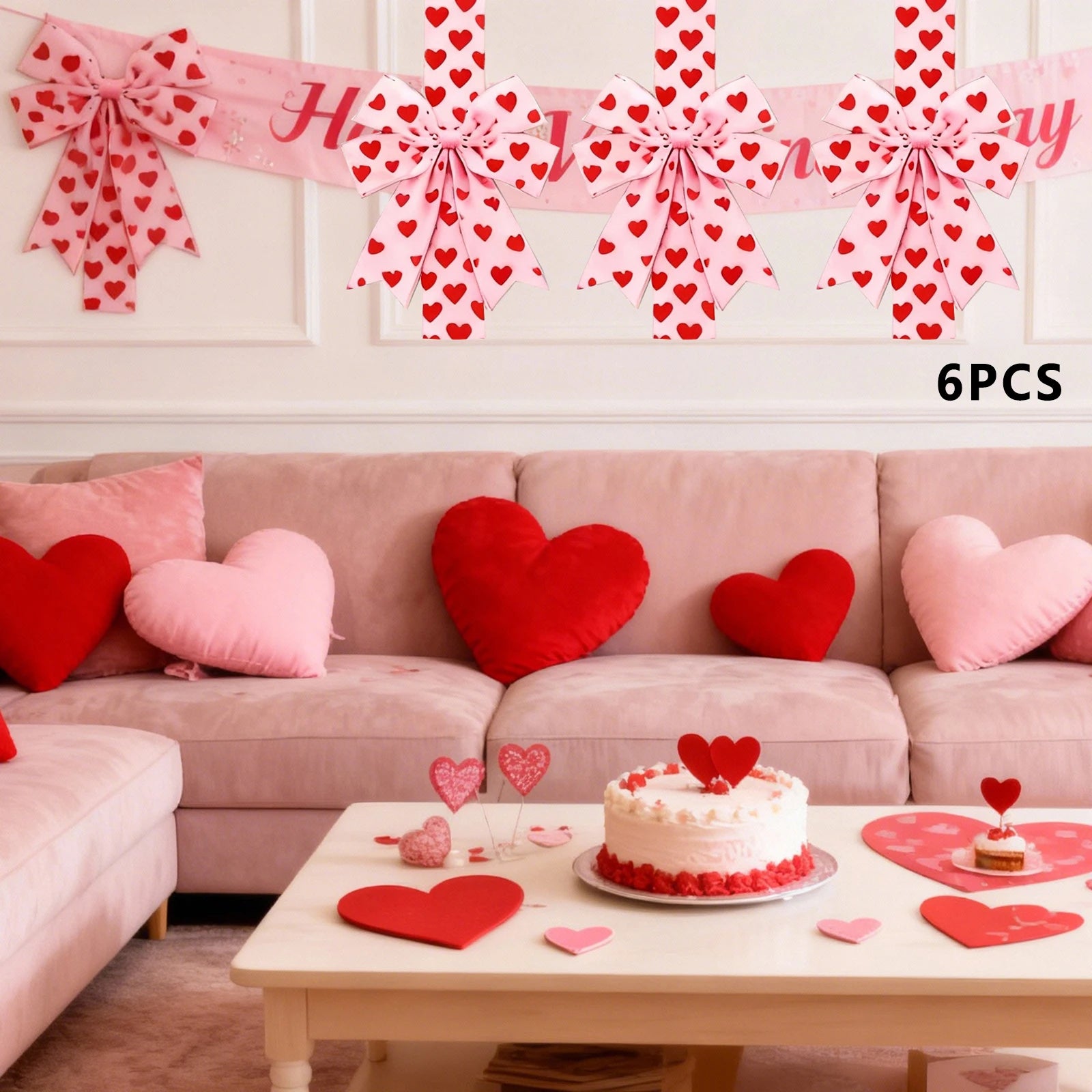 Answer 1: The bow spans a generous width, perfect for gift boxes, doors, or room decor. Please refer to the product specs for exact dimensions. - Question 2: Is this bow suitable for more than just Valentine's Day?